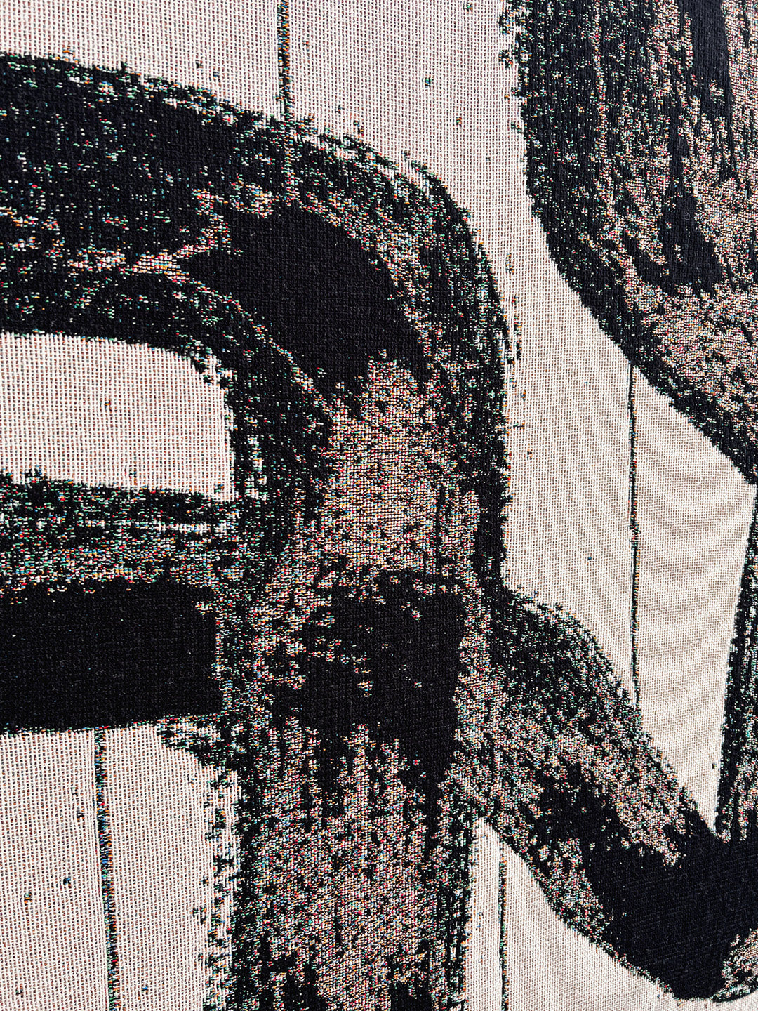 By exposing my process of taking my original handmade painting off the wall, reconstructing it into a woven tapestry, stretching, framing, and reinstalling it back on a wall, I aim to challenge our preconceived notions of art form and presentation.
