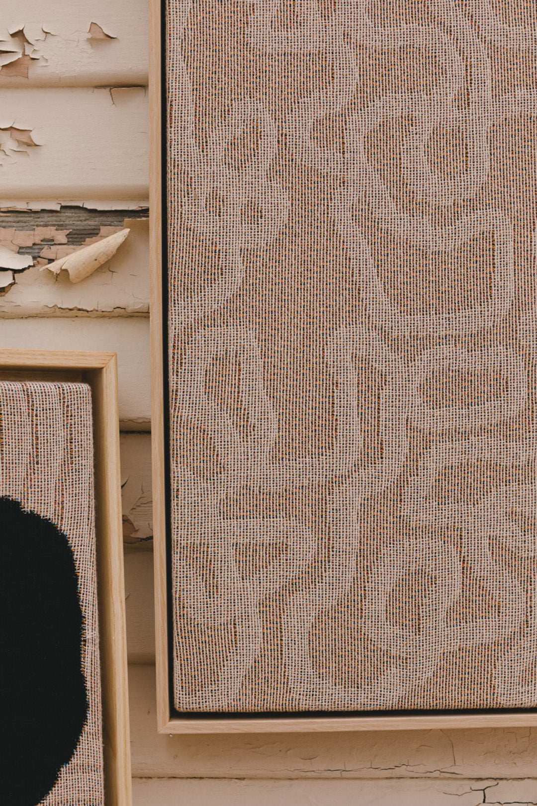 Intertwining the worlds of textile art and traditional painting is the transformative process of developing “Framed Wovens”.