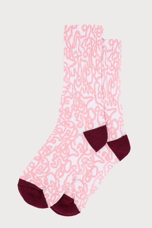 SCRIBBLES IN PINK Jacquard Woven Socks