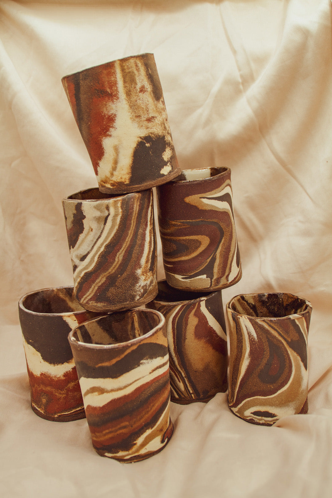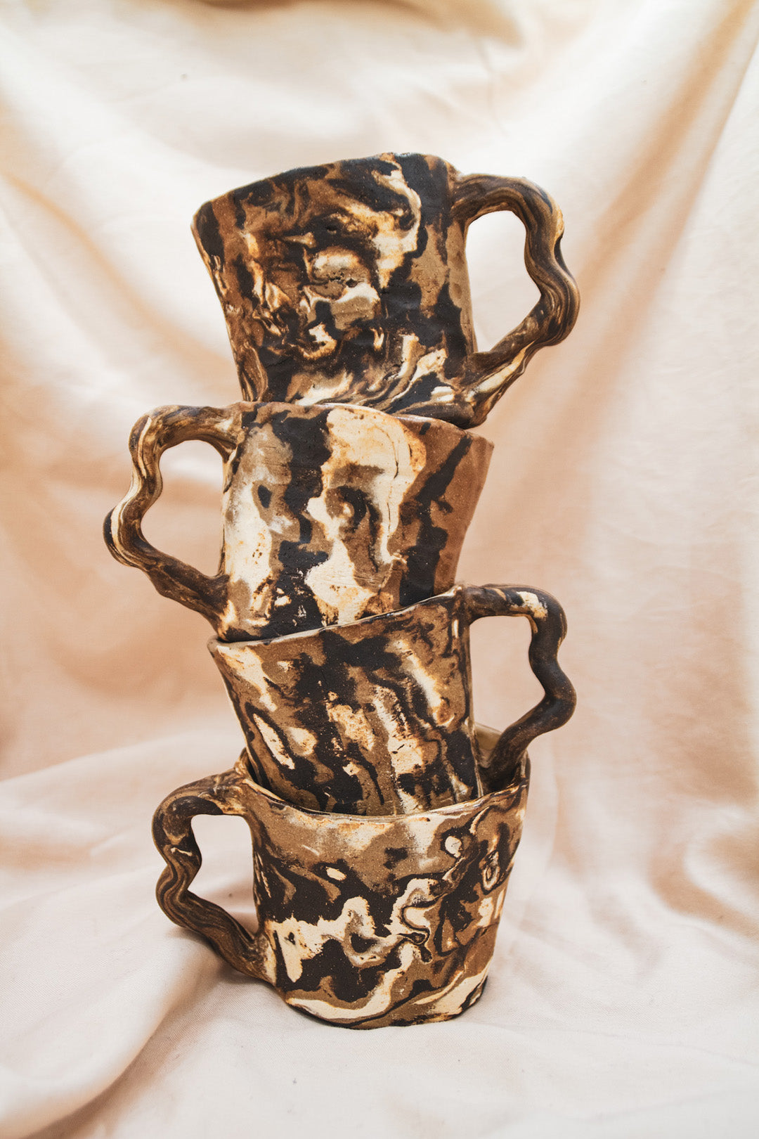 These ceramic pieces are an exploration on the nuances and versatility that clay marbling may have on functional & non-functional ceramics.