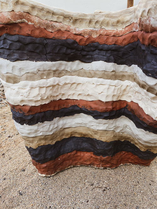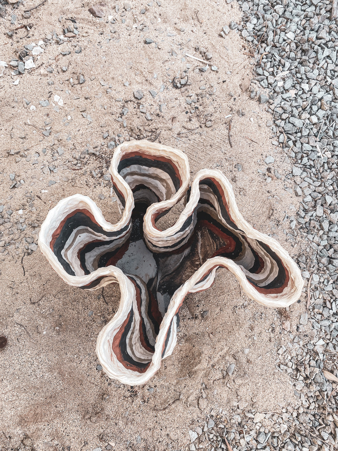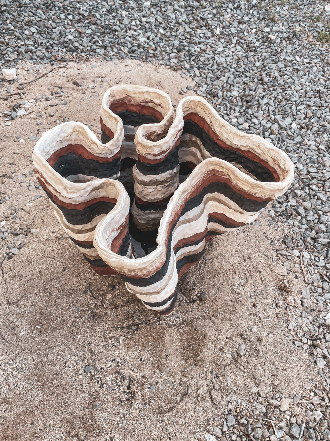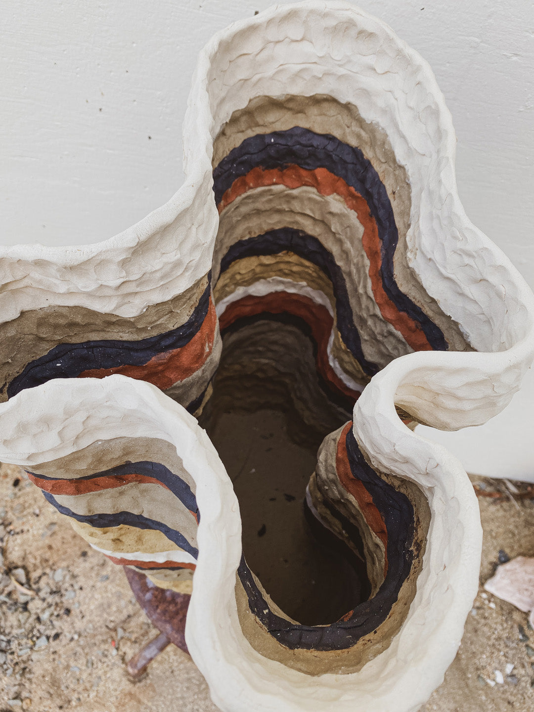 Muted earth tones, and organic forms that embrace a naturalistic irregularity, reappear throughout my work, as a result of being surrounded by constant activity in places like the beach, the desert, city sidewalks, and even the woods, throughout my travels.