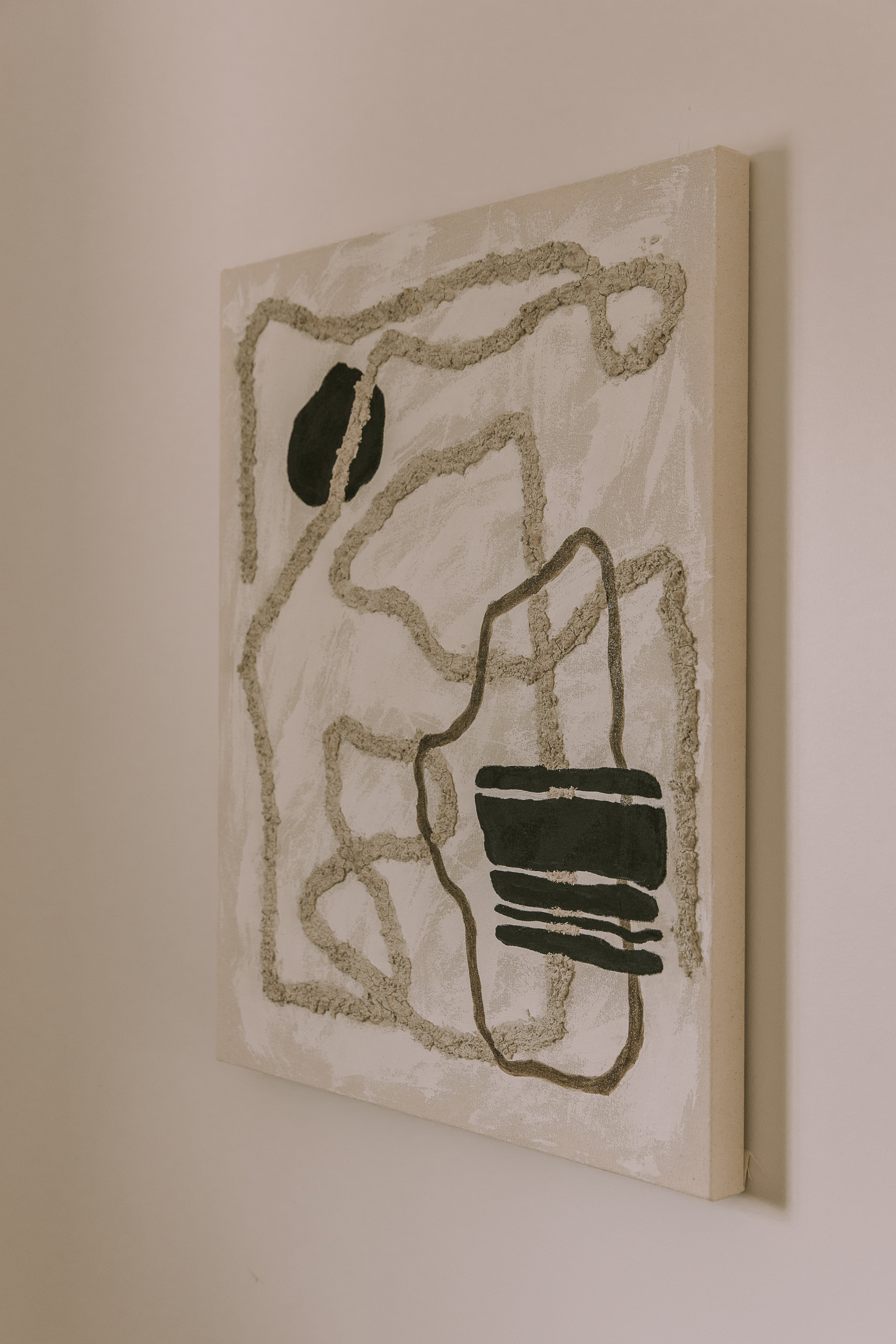 Occasionally, untraditional materials like coffee, aspects inspired by “Art-Brut”, and organic design elements that resemble mid-century modern aesthetics, are also worked into my compositions.