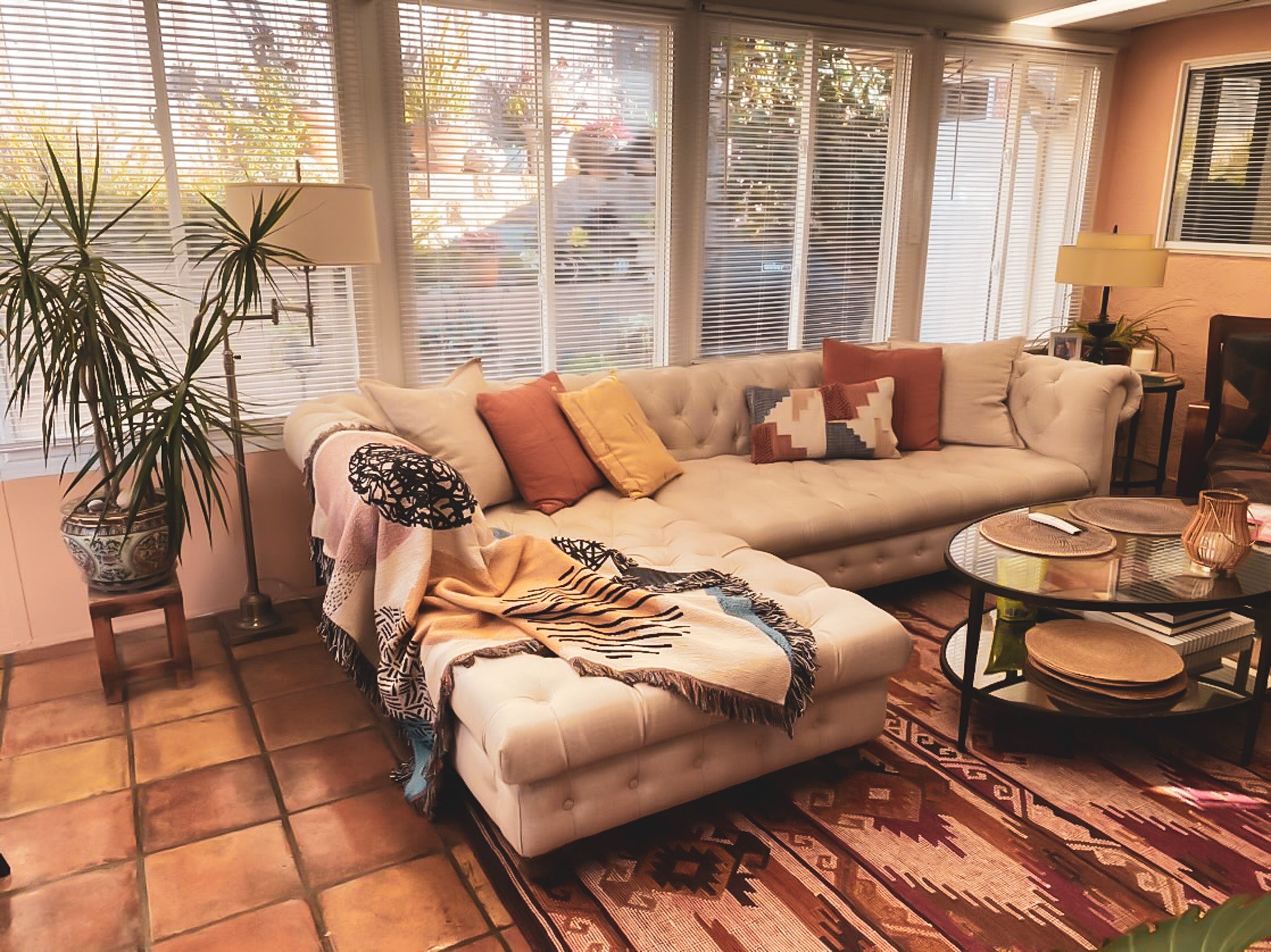 The SOUTHWESTERN jacquard woven throw blanket captures the spirit of desert landscapes, featuring warm tones and rich textures inspired by Parker’s travels and artistic vision.